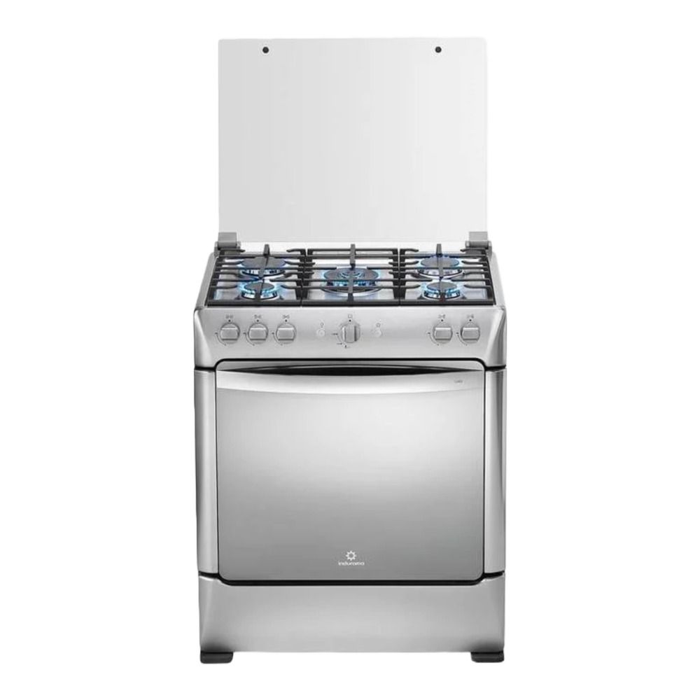 Cubierta sellada de acero inoxidable, parrillas de fundici?n, 6 quemadores (2 jumbo y 4 est?ndar), encendido el?ctrico a bot?n en quemadores, recubrimiento interior Easy Clean Pro, puerta del horno panor?mico, doble vidrio en la puerta del horno, luz interior. Dimensiones: 92.5cm x 76cm x 55.6cm.